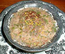 уложить в дюршлаг, обдать холодной водой и хорошенько отжать. Прибавить к фаршу