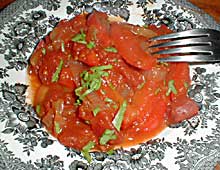 до мягкости перца, минут этак 10. Увеличим огонь, прибавим помидоры и мешая и давя, доведем