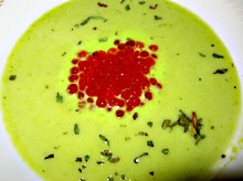 Сперва попробовал с крутонами - совсем неплохо. Потом вспомнил о банке красной икры и сделал