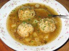 Прибавил фрикадельки, травки и специи к супу, досолил и проварил до всплывания фрикаделек - минут 10.